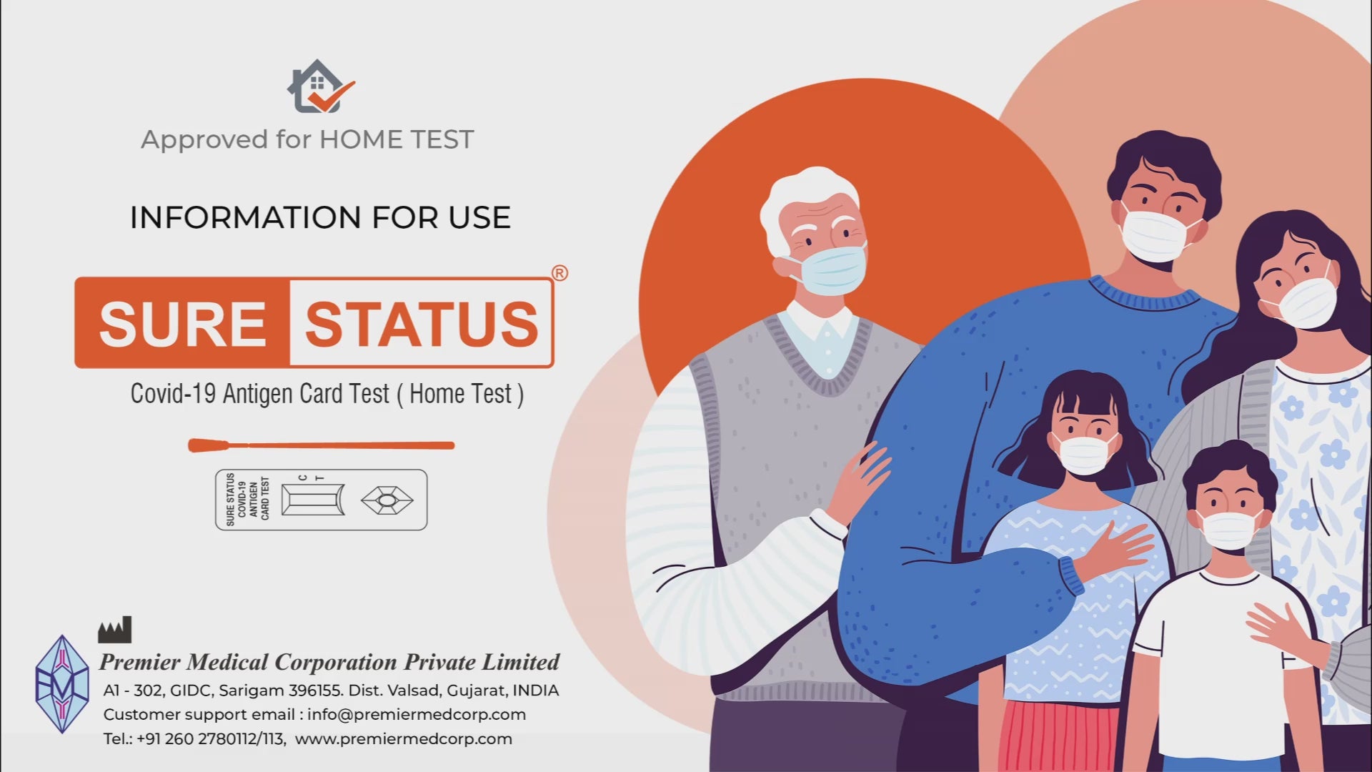 Sure Status COVID-19 Antigen Card Test by Premier Medical Corporation is a rapid Immunochromatographic Card Test for the detection of SARS-CoV-2 Antigen in Human Nasal Swab. For self-testing (home use).