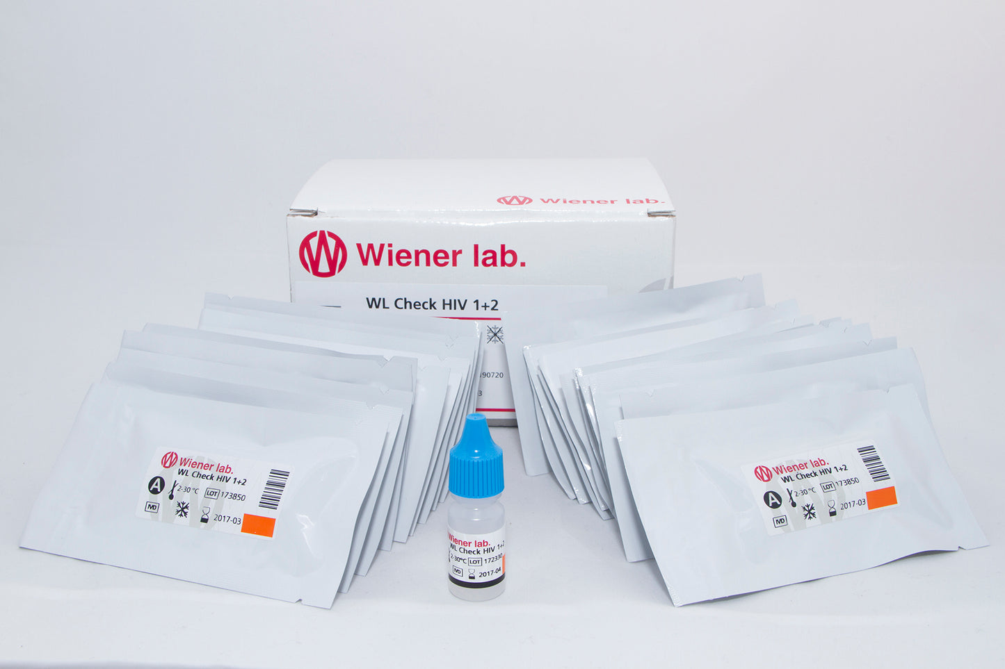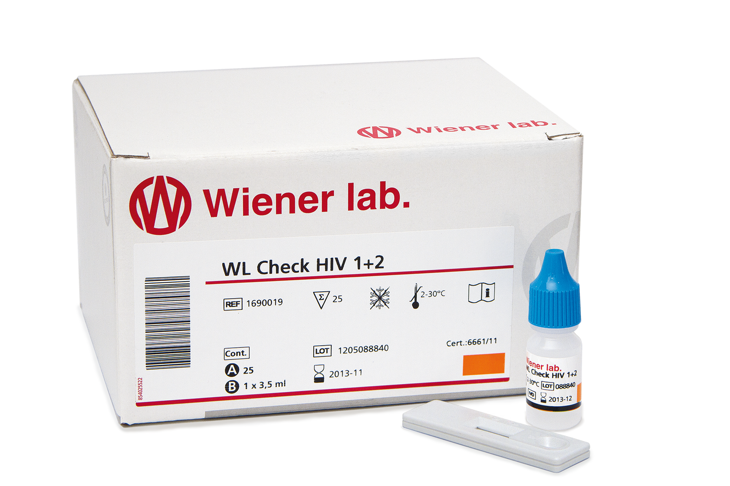WL Check HIV 1+2 Test by Wiener lab. is an in vitro immunochromatographic test for qualitative detection of anti-HIV-1, anti-HIV-1 group O and HIV-2 antibodies in serum, plasma and whole blood.